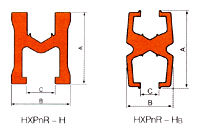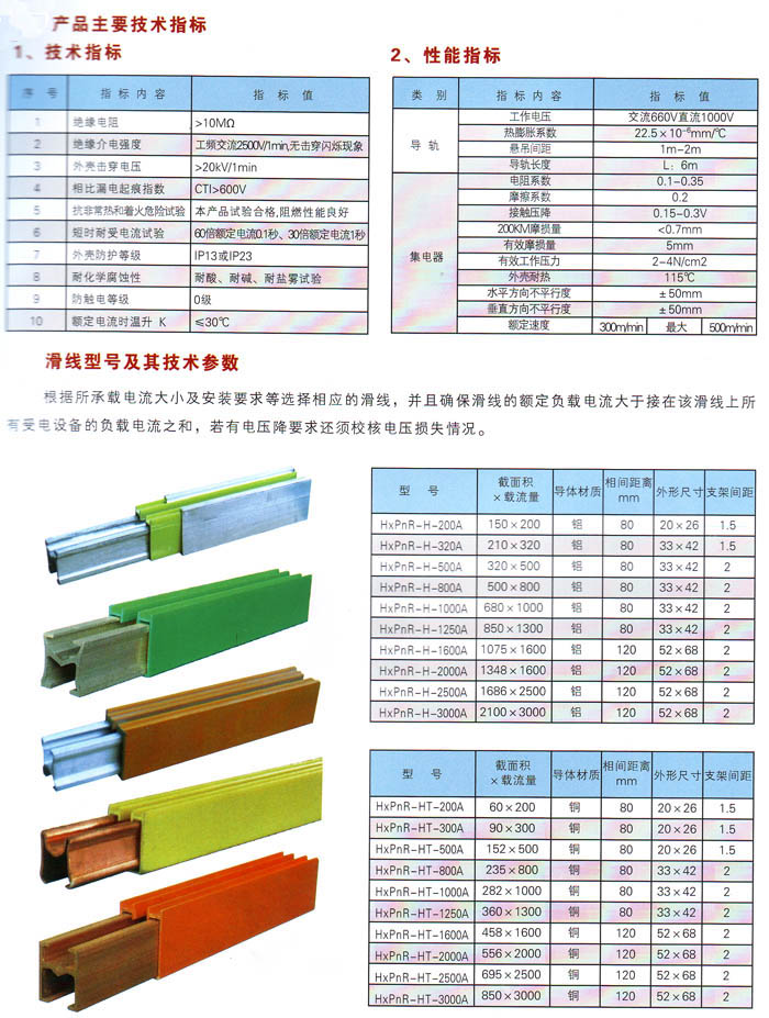 注:1、滑触线标准长度:6m。 2、HXPnR-H与HXPnR-H B 以及HXPnR-H A 性能相同,几何形状和集电方式不同。 3、HXPnR-H型有铝合金和铜体两种材料的滑线。